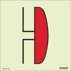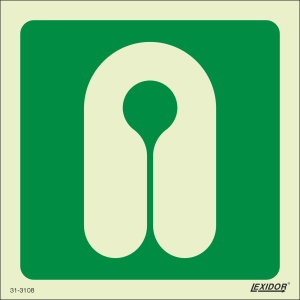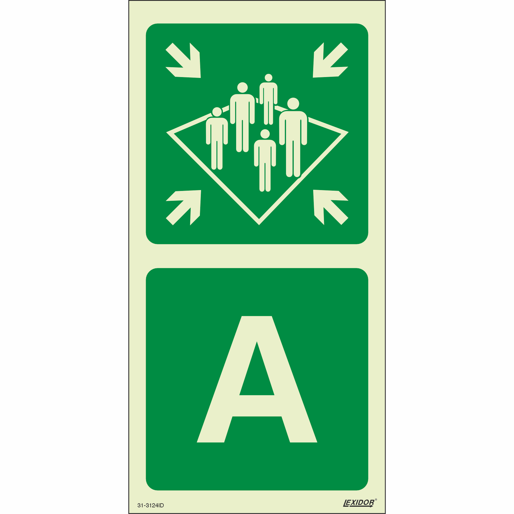 Means of escape signs which provide escape route identification to a safe area (assembly station / embarkation station).