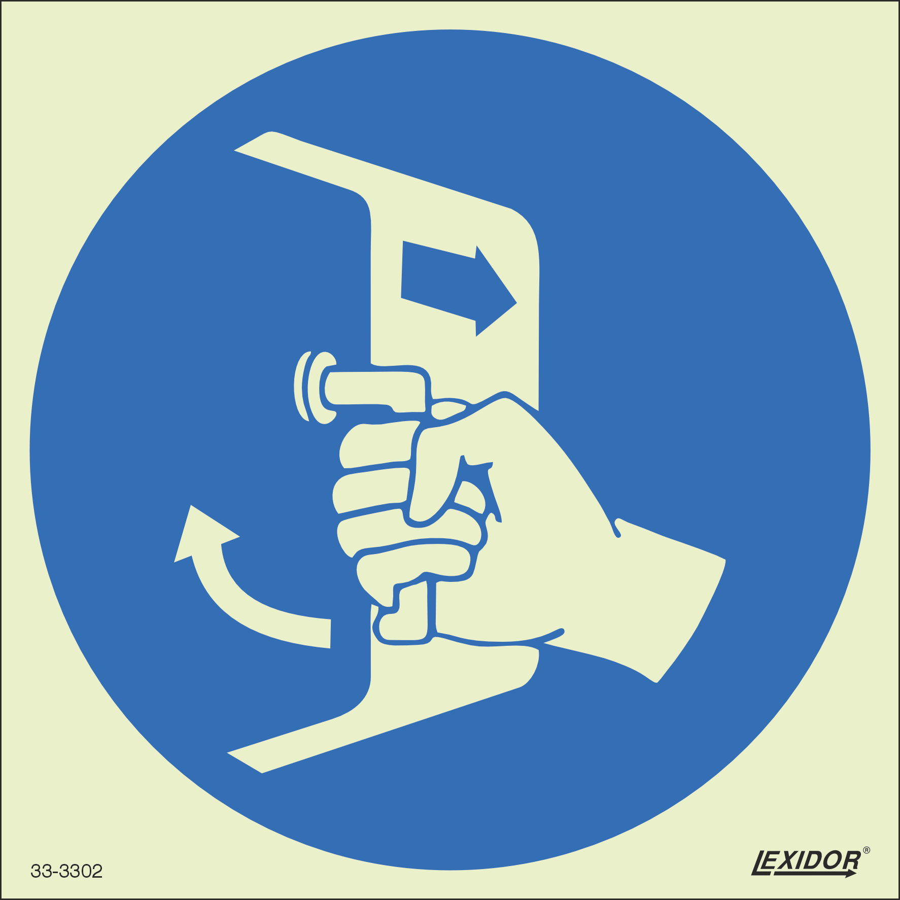 Mandatory action signs for launching lifesaving equipment and marking of lifeboat.