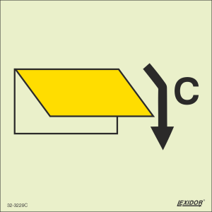 Means of escape signs which provide escape route identification to a safe area (assembly station / embarkation station).