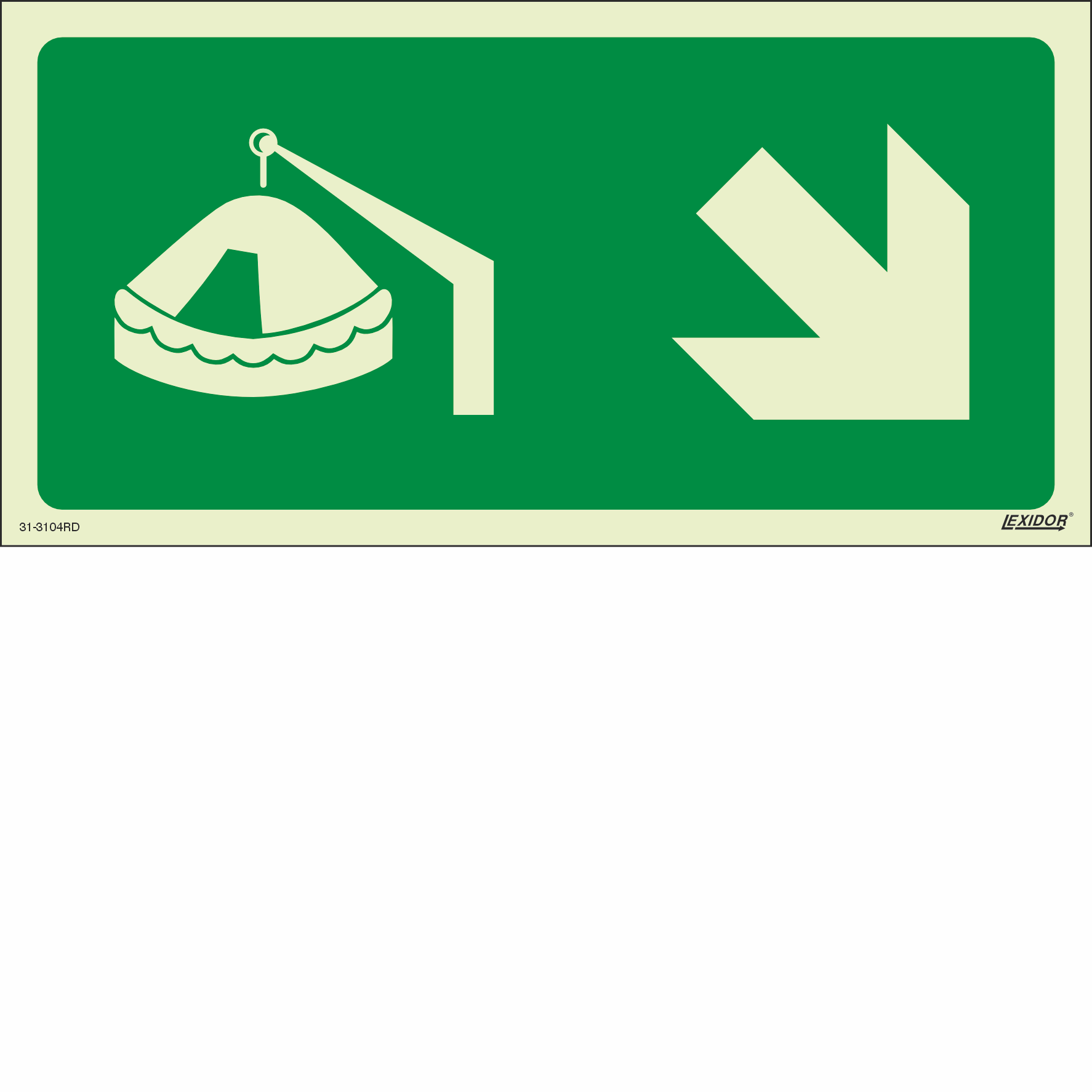 Means of escape signs which provide escape route identification to a safe area (assembly station / embarkation station).
