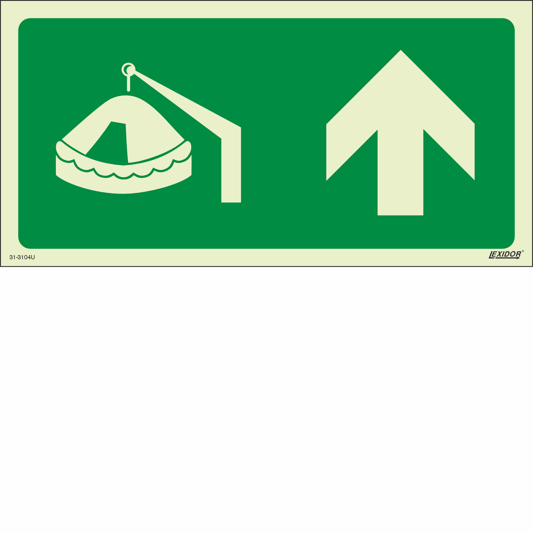 Means of escape signs which provide escape route identification to a safe area (assembly station / embarkation station).
