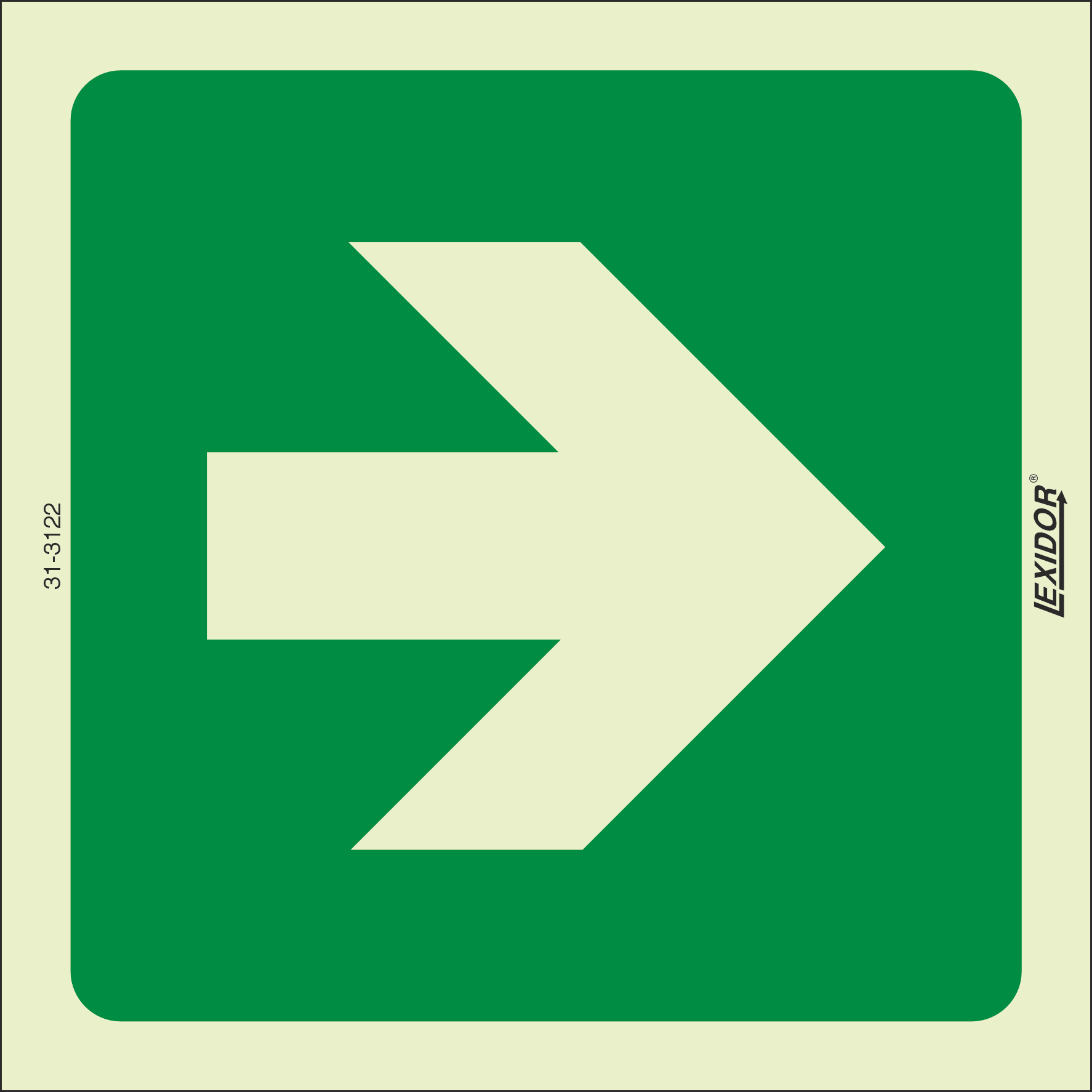 Means of escape signs which provide escape route identification to a safe area (assembly station / embarkation station).