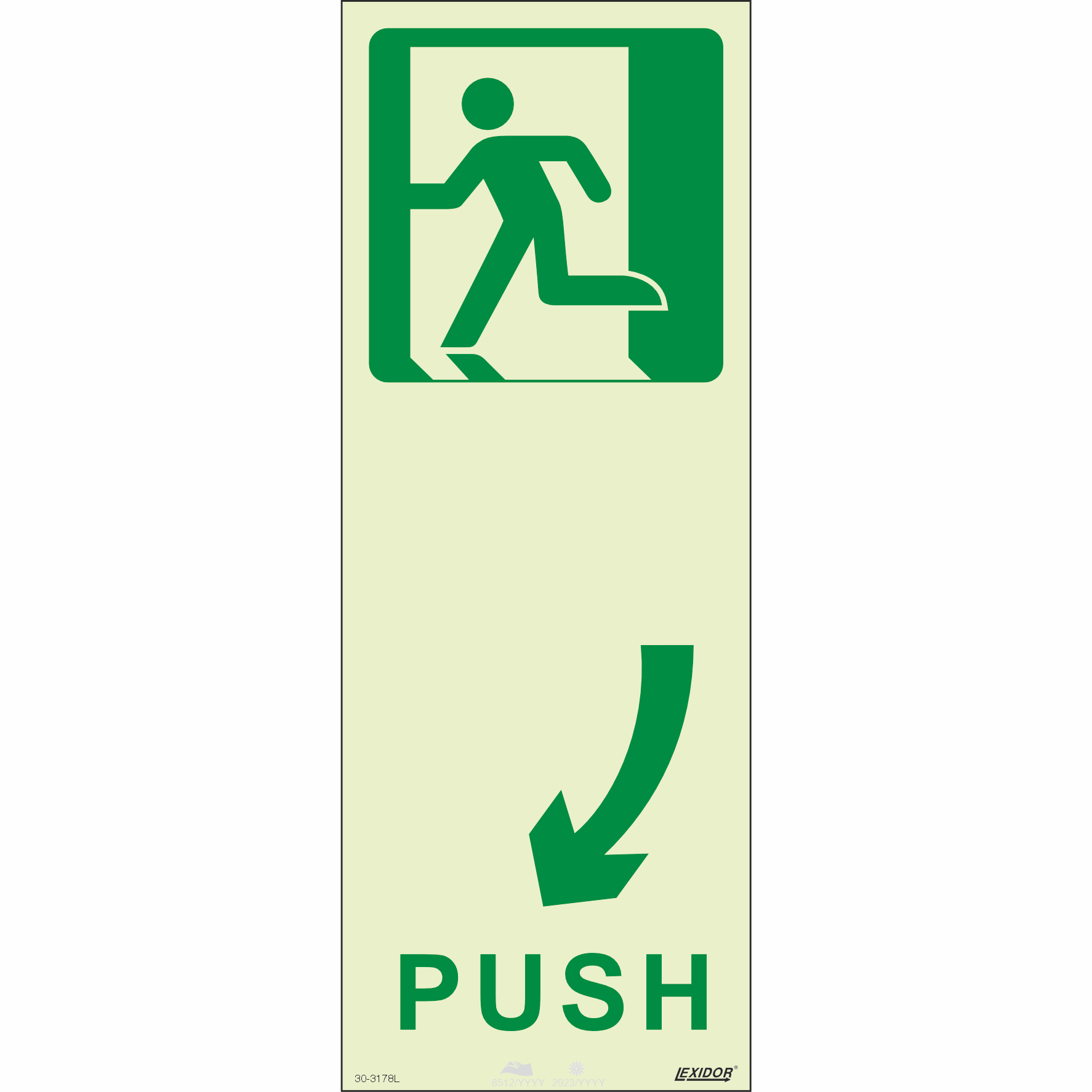 The Photoluminescent Safety Products Association (PSPA) recommends a minimum of Class C photoluminescent material for safety signage to ensure adequate visibility and performance in emergency situations.