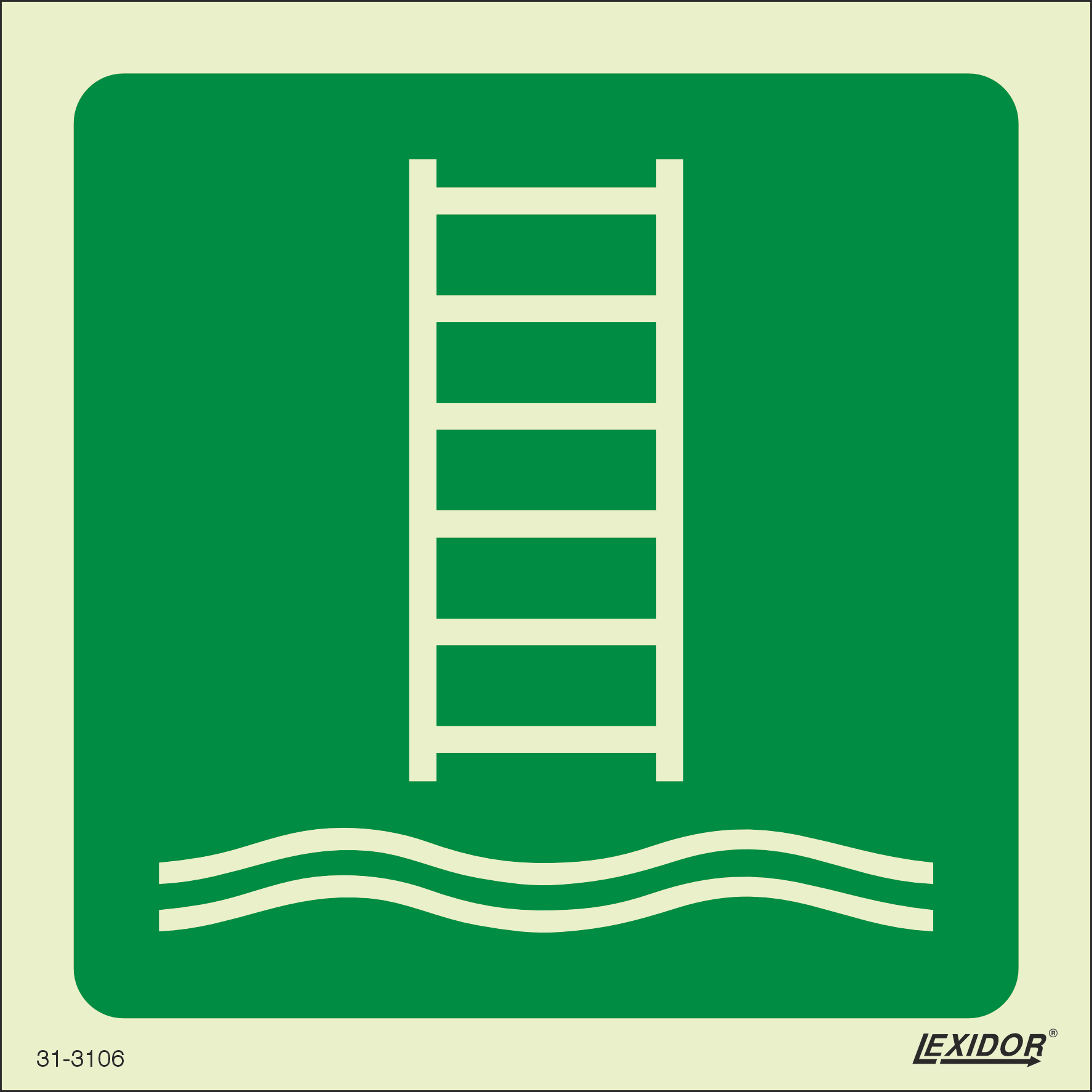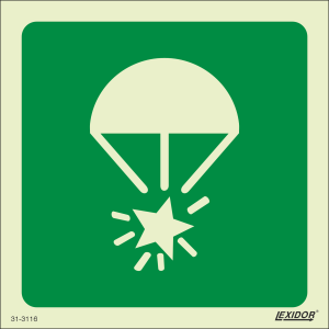 Means of escape signs which provide escape route identification to a safe area (assembly station / embarkation station).