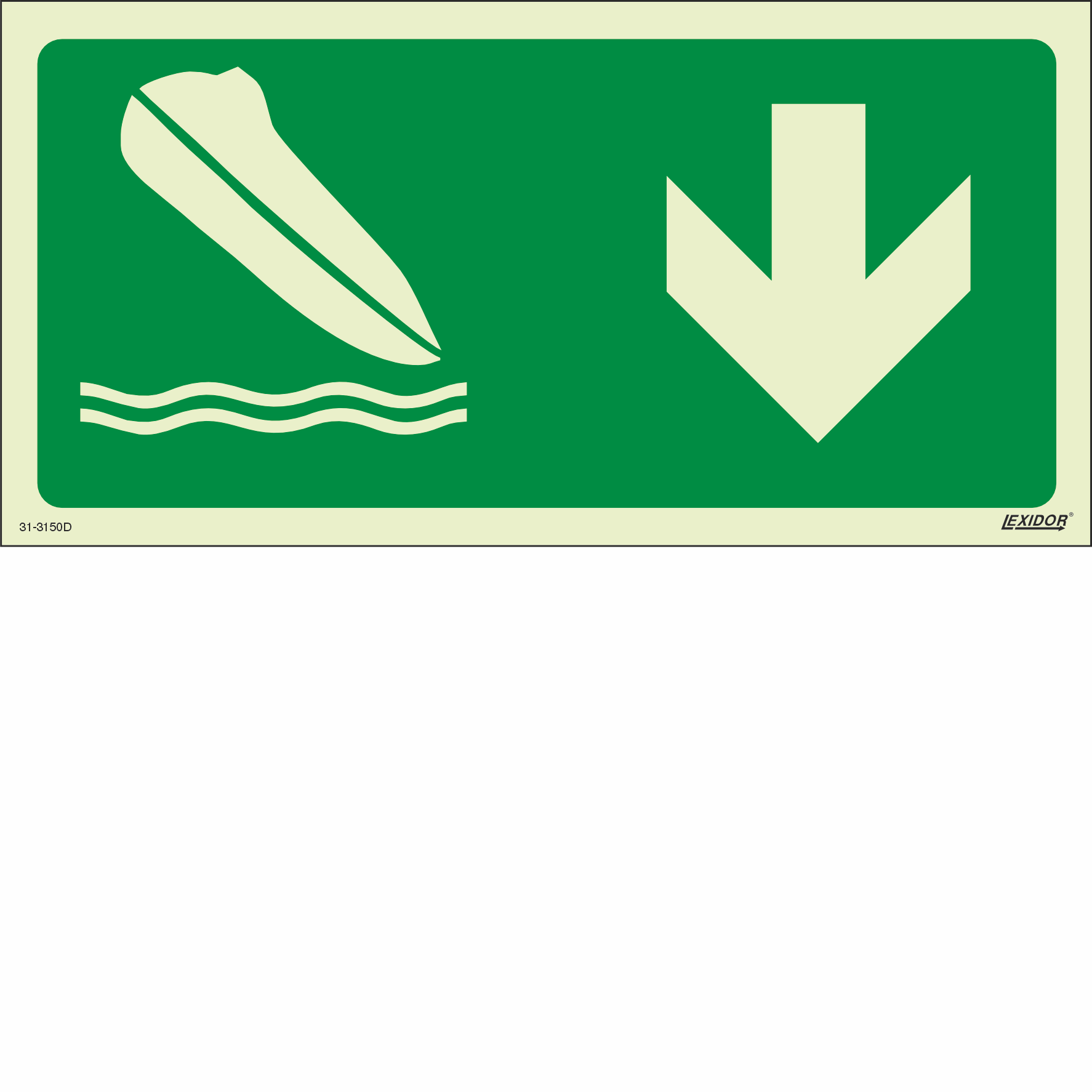 Means of escape signs which provide escape route identification to a safe area (assembly station / embarkation station).