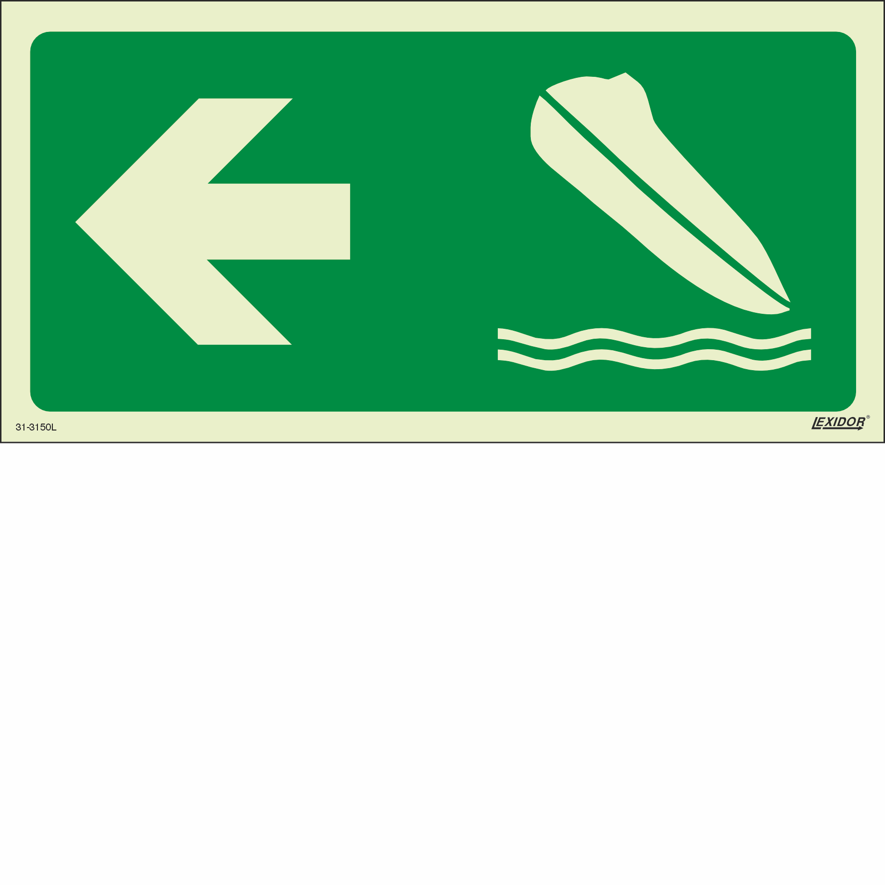 Means of escape signs which provide escape route identification to a safe area (assembly station / embarkation station).