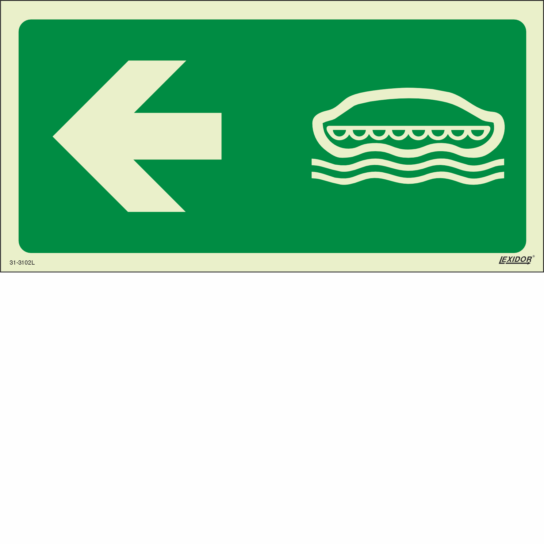 Means of escape signs which provide escape route identification to a safe area (assembly station / embarkation station).