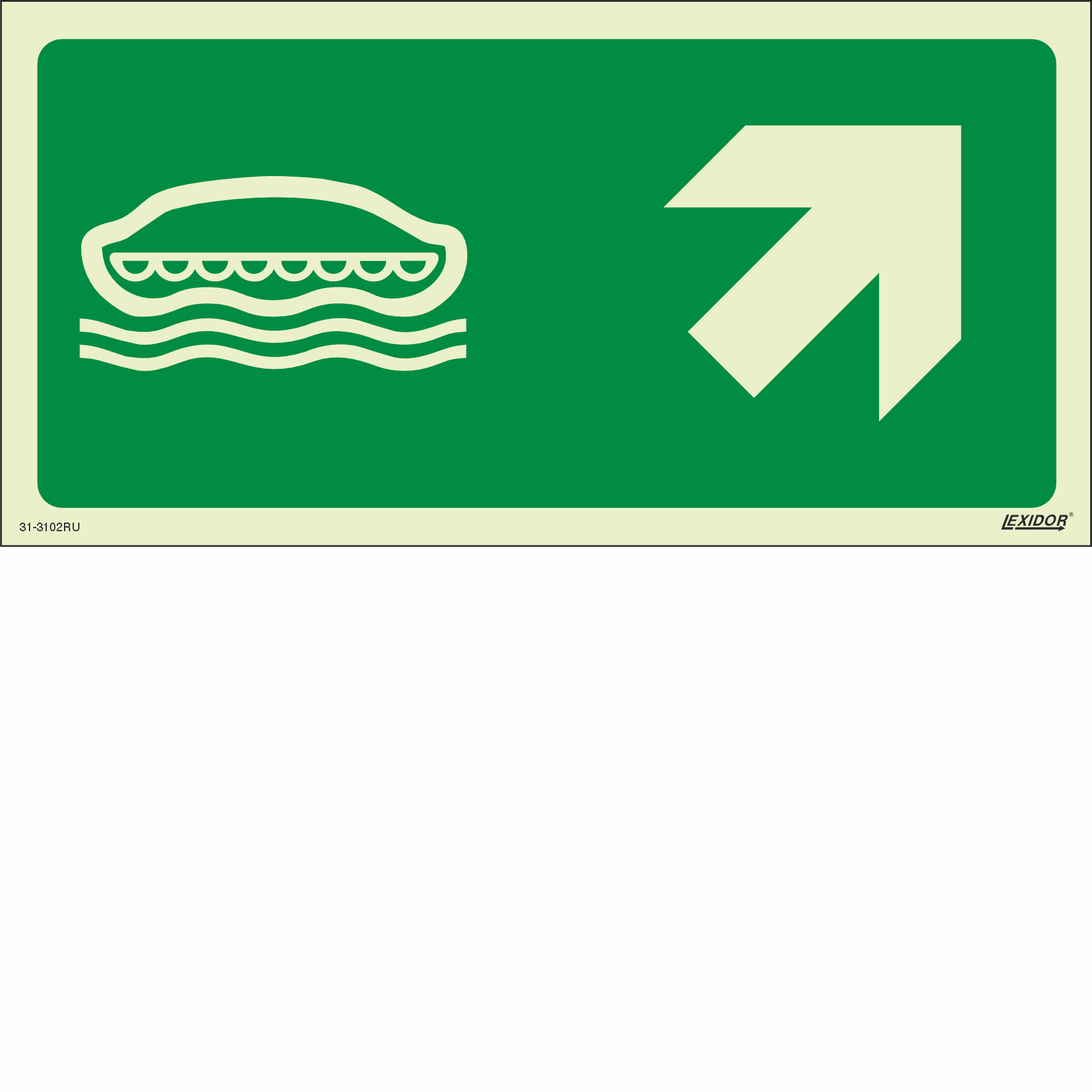 Means of escape signs which provide escape route identification to a safe area (assembly station / embarkation station).