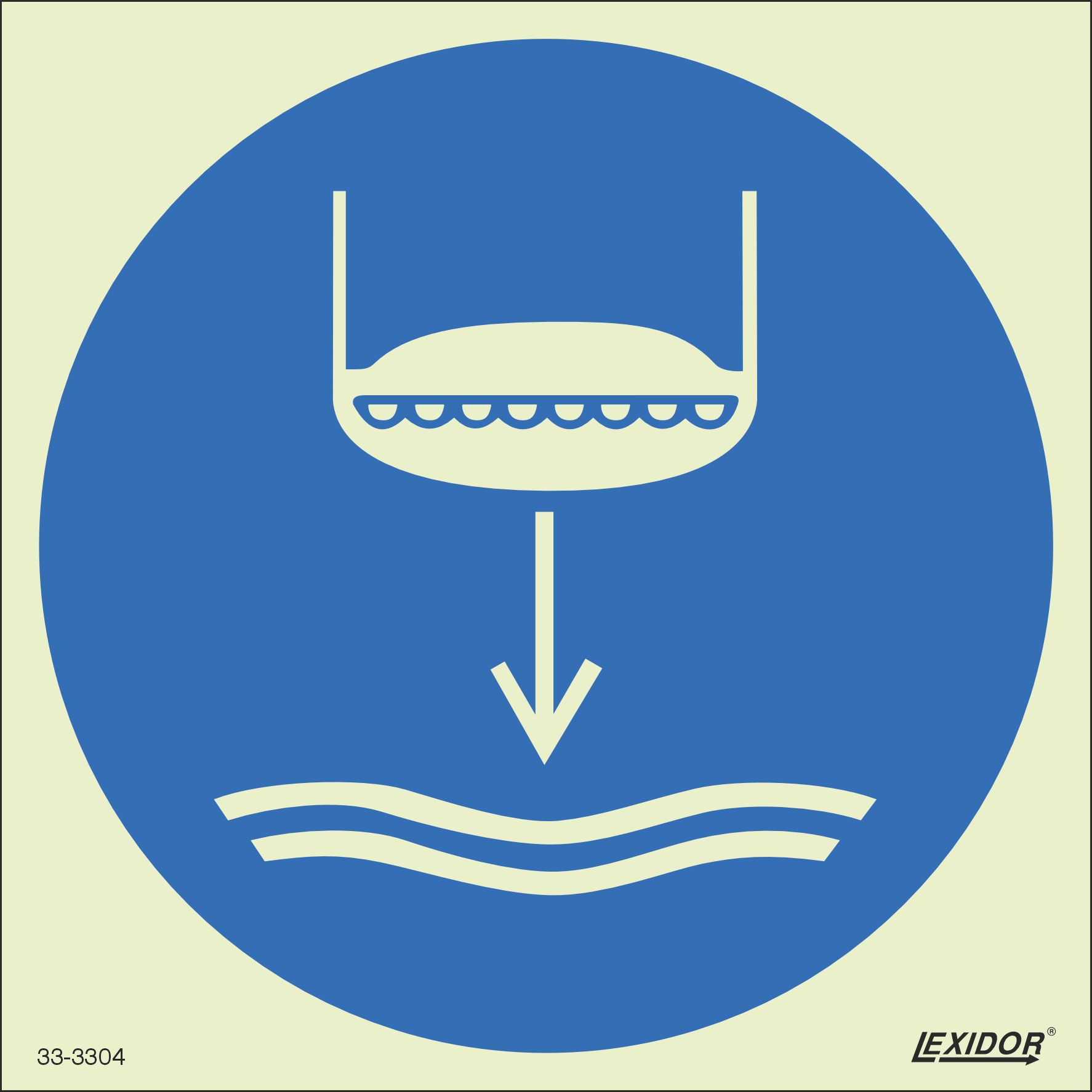 Mandatory action signs for launching lifesaving equipment and marking of lifeboat.