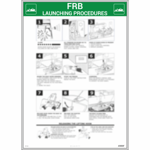 Mandatory action signs for launching lifesaving equipment and marking of lifeboat.