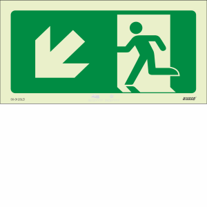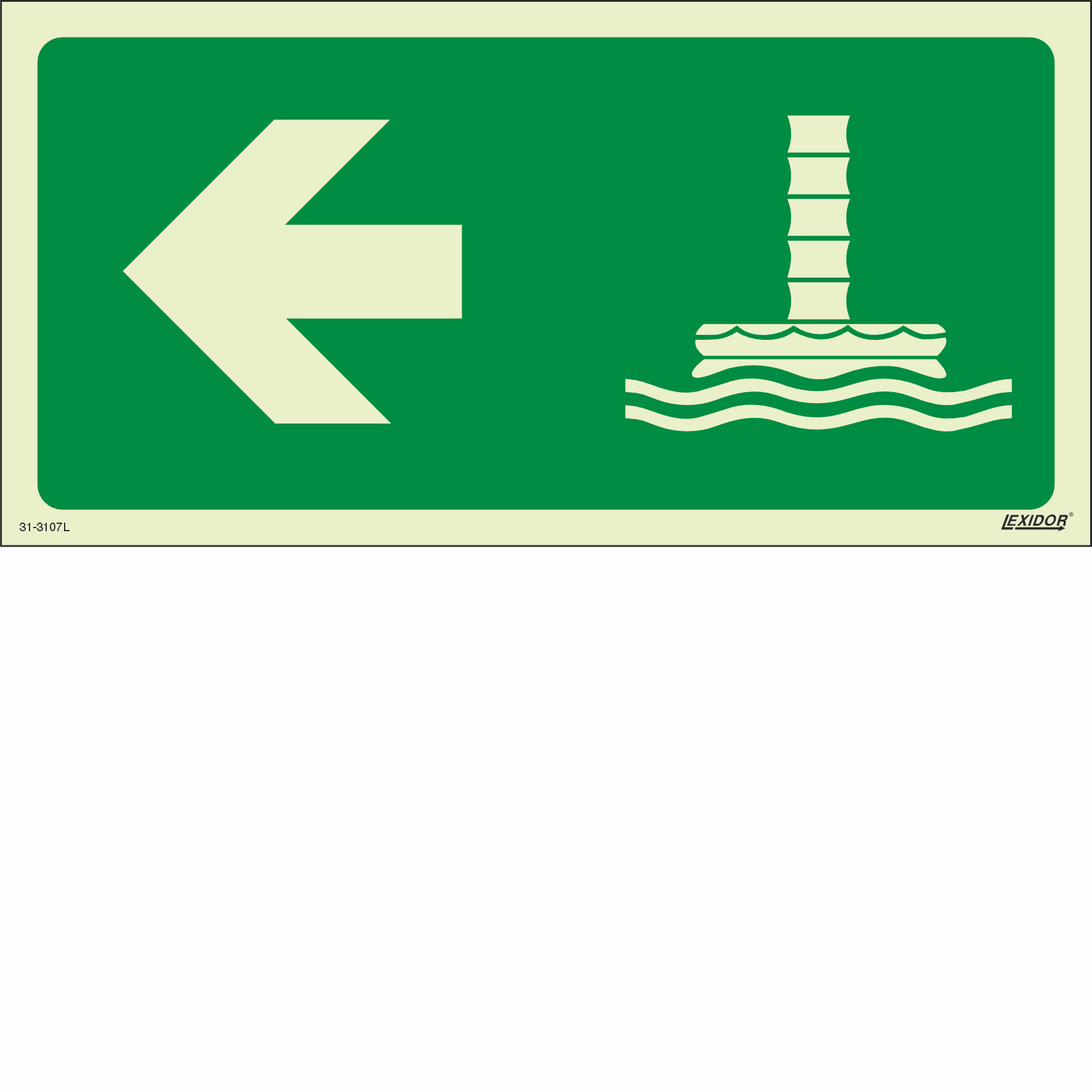 Means of escape signs which provide escape route identification to a safe area (assembly station / embarkation station).