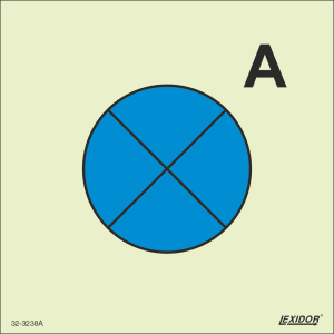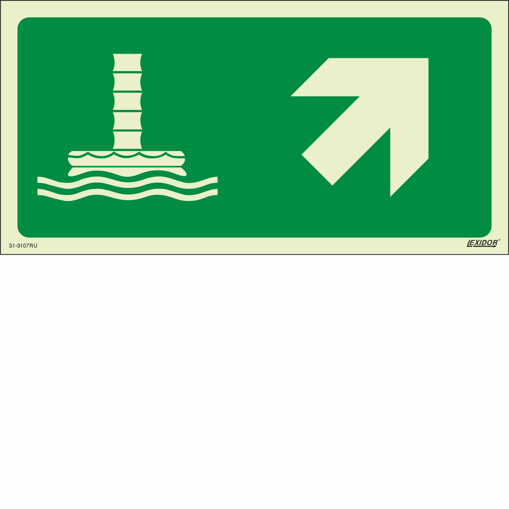 Means of escape signs which provide escape route identification to a safe area (assembly station / embarkation station).