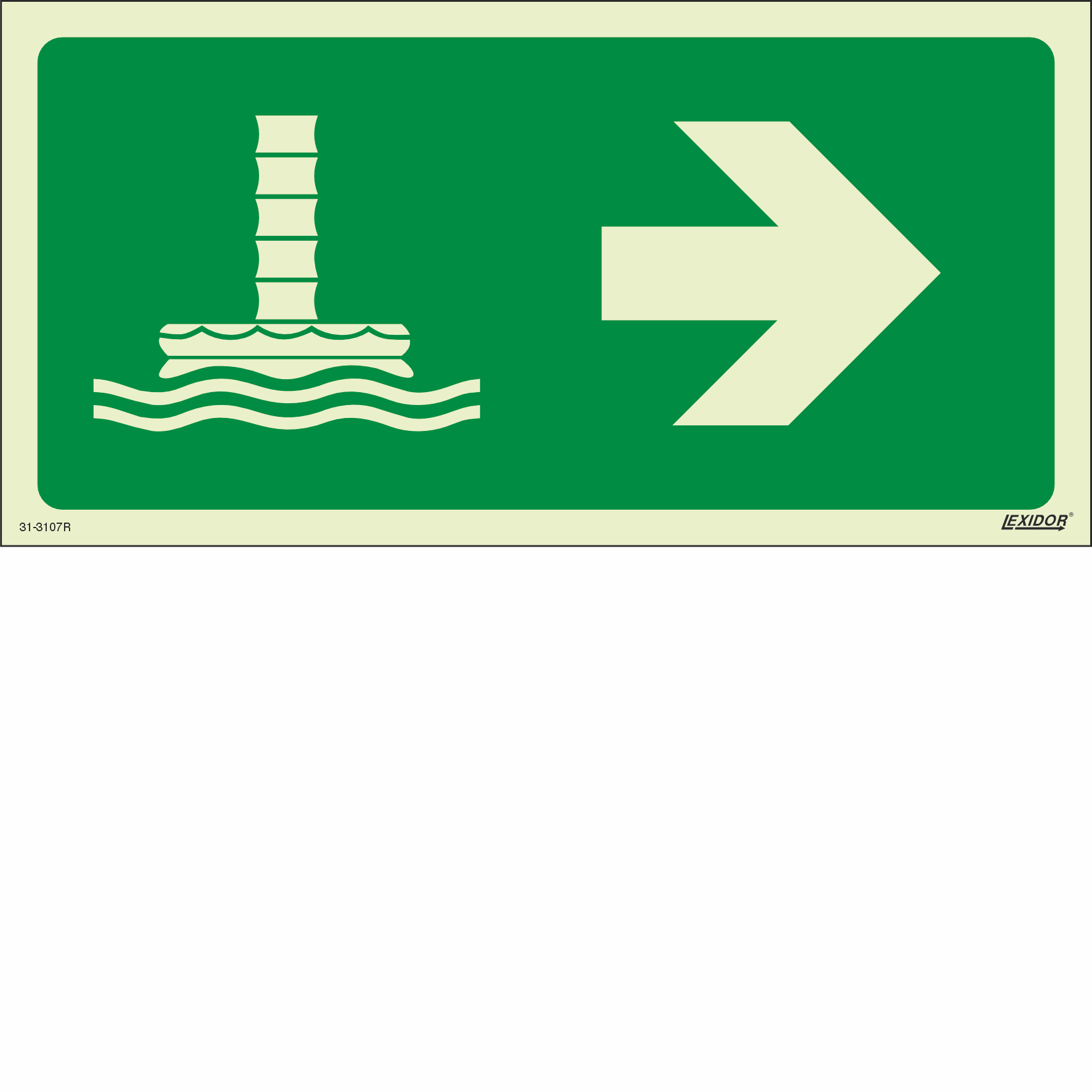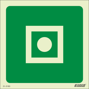 Means of escape signs which provide escape route identification to a safe area (assembly station / embarkation station).