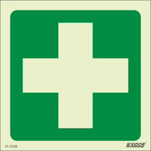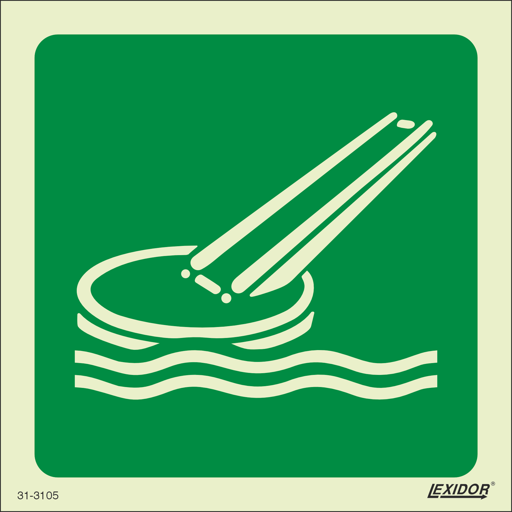 Means of escape signs which provide escape route identification to a safe area (assembly station / embarkation station).