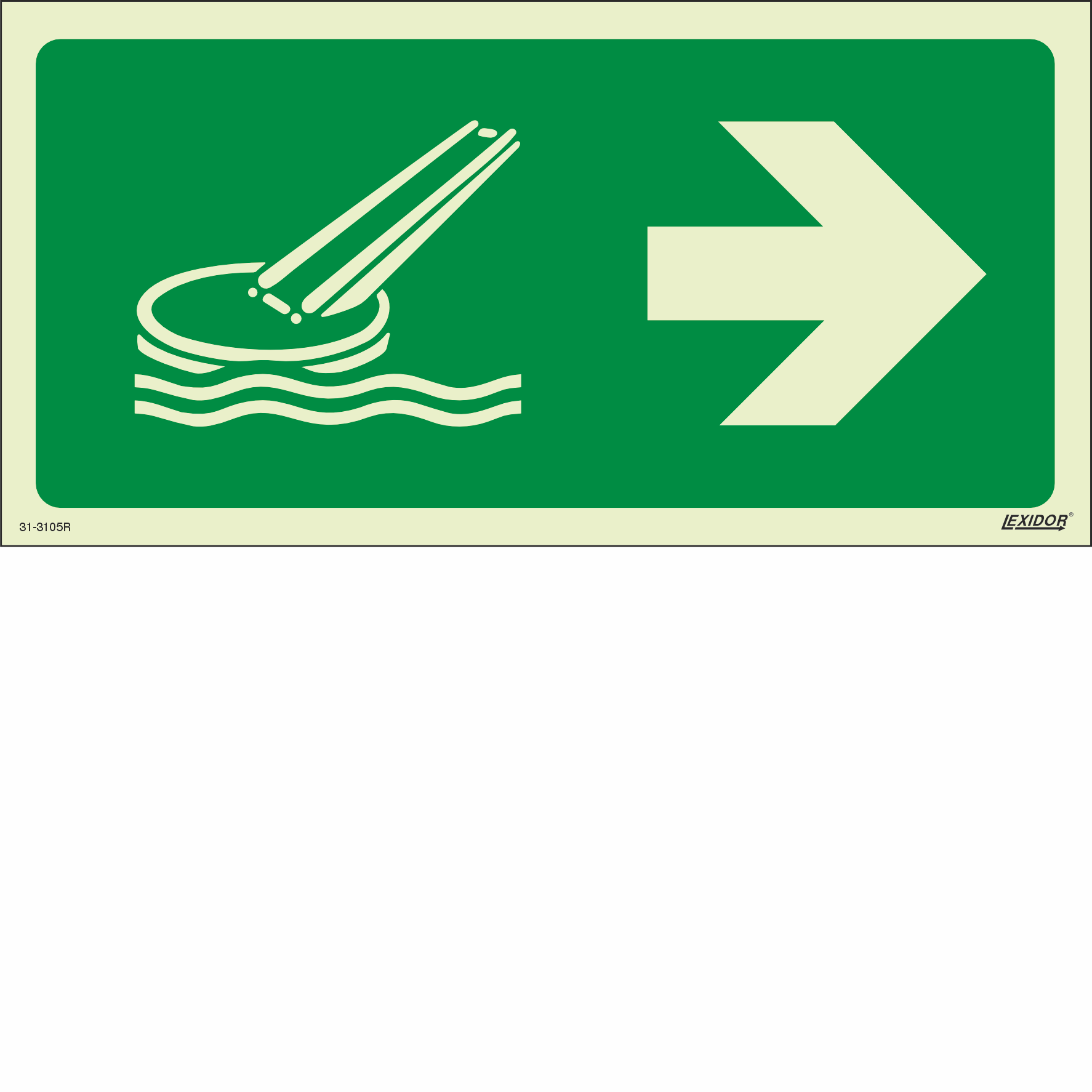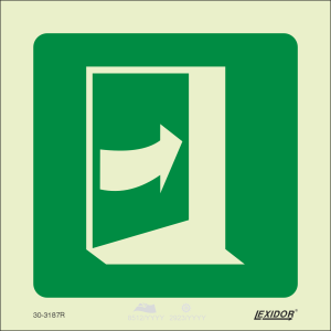 Means of escape signs which provide escape route identification to a safe area (assembly station / embarkation station).