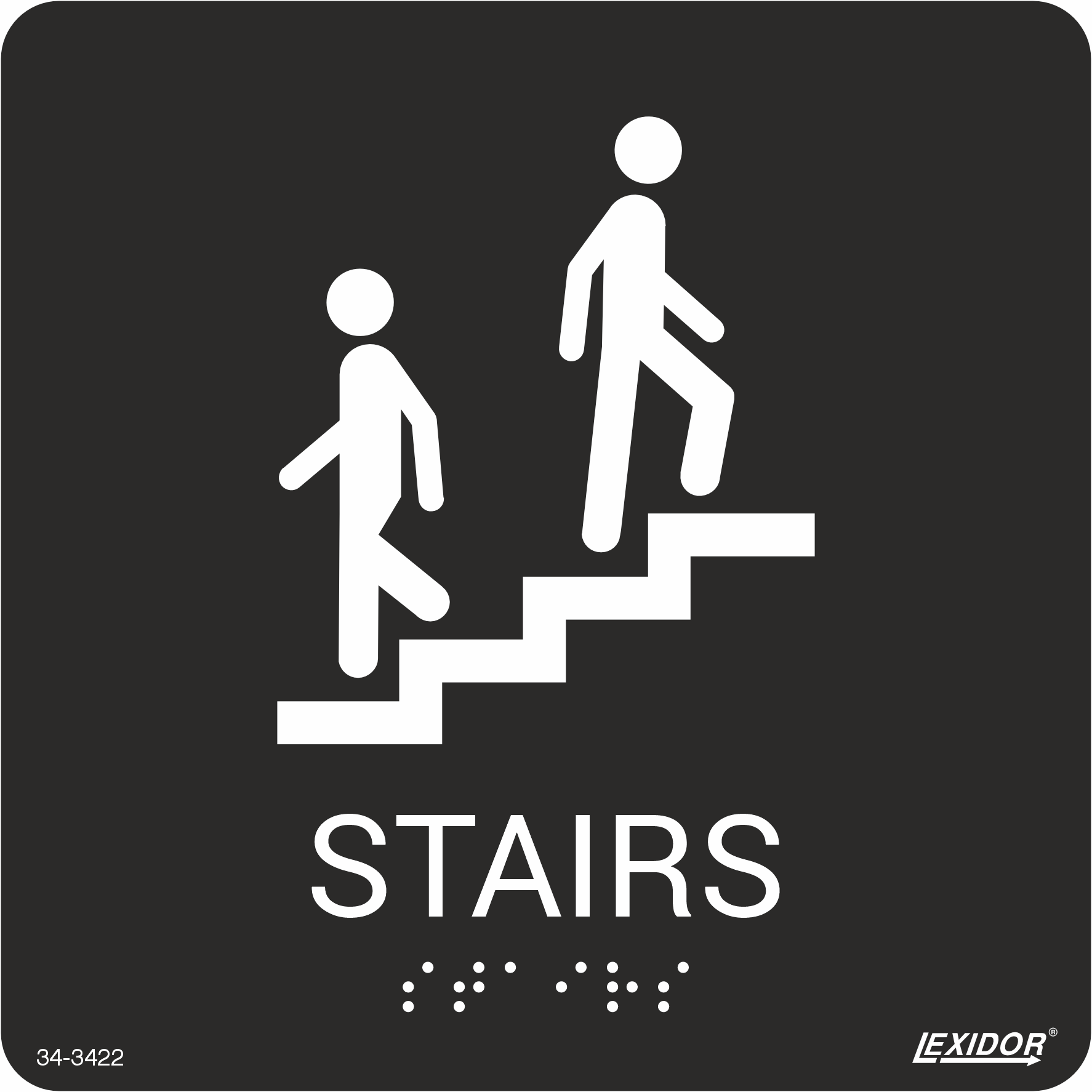 Tactile signs with Braille which provide essential information in a readable format to increase accessibility.