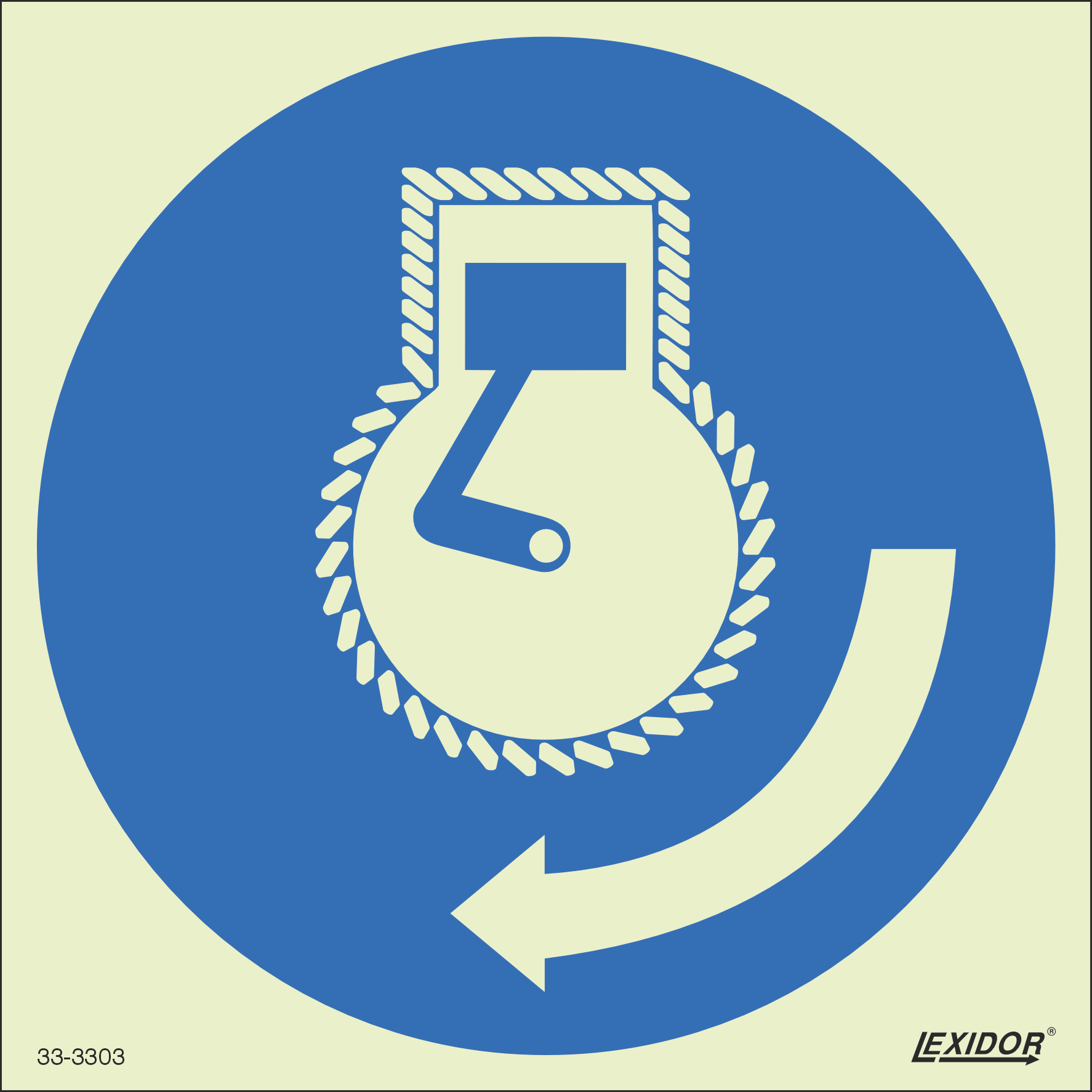 Mandatory action signs for launching lifesaving equipment and marking of lifeboat.